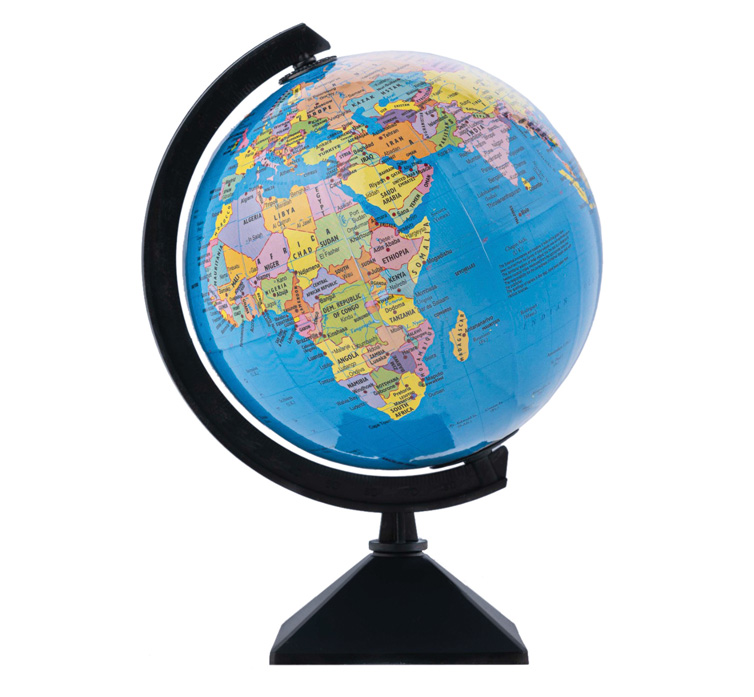 Special Feature : Globe rotates Freely on Axis Base in Shape of Pyramid